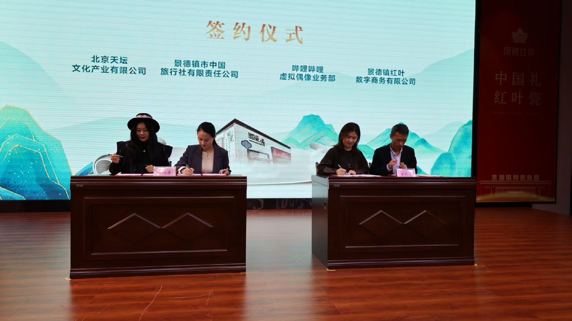 成立大會上,與會嘉賓共同觀看了國瓷紅葉畫院宣傳片,現(xiàn)場頒發(fā)了畫院聘書,并完成了與北京天壇文化產(chǎn)業(yè)有限公司、嗶哩嗶哩虛擬偶像業(yè)務(wù)部的合作簽約儀式。