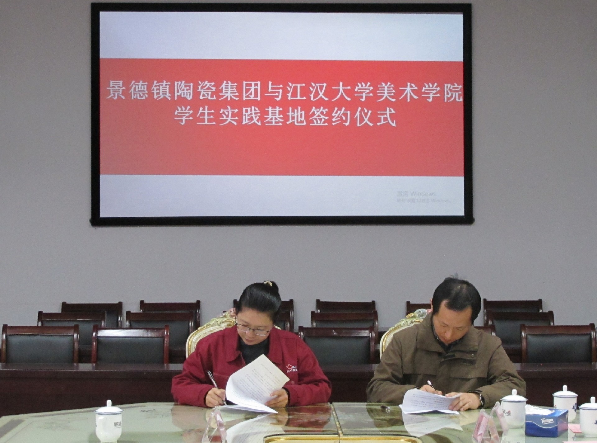 會(huì)上,舉行了江漢大學(xué)美術(shù)學(xué)院與景陶集團(tuán)“共建學(xué)生實(shí)踐基地”簽約授牌儀式。集團(tuán)人力資源部部長薛景玉、江漢大學(xué)美術(shù)學(xué)院副院長馬杰分別代表雙方初步簽訂了《校外實(shí)習(xí)基地建設(shè)協(xié)議書》,江漢大學(xué)美術(shù)學(xué)院副書記楊緒軍代表江大美院捐贈(zèng)《江漢大學(xué)美術(shù)學(xué)院畢業(yè)作品集》等書籍。