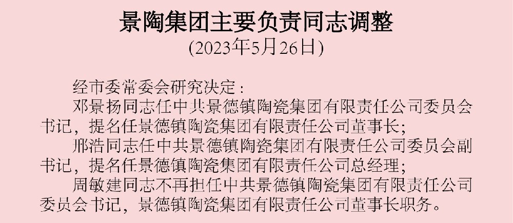 景陶集團主要負責(zé)同志調(diào)整