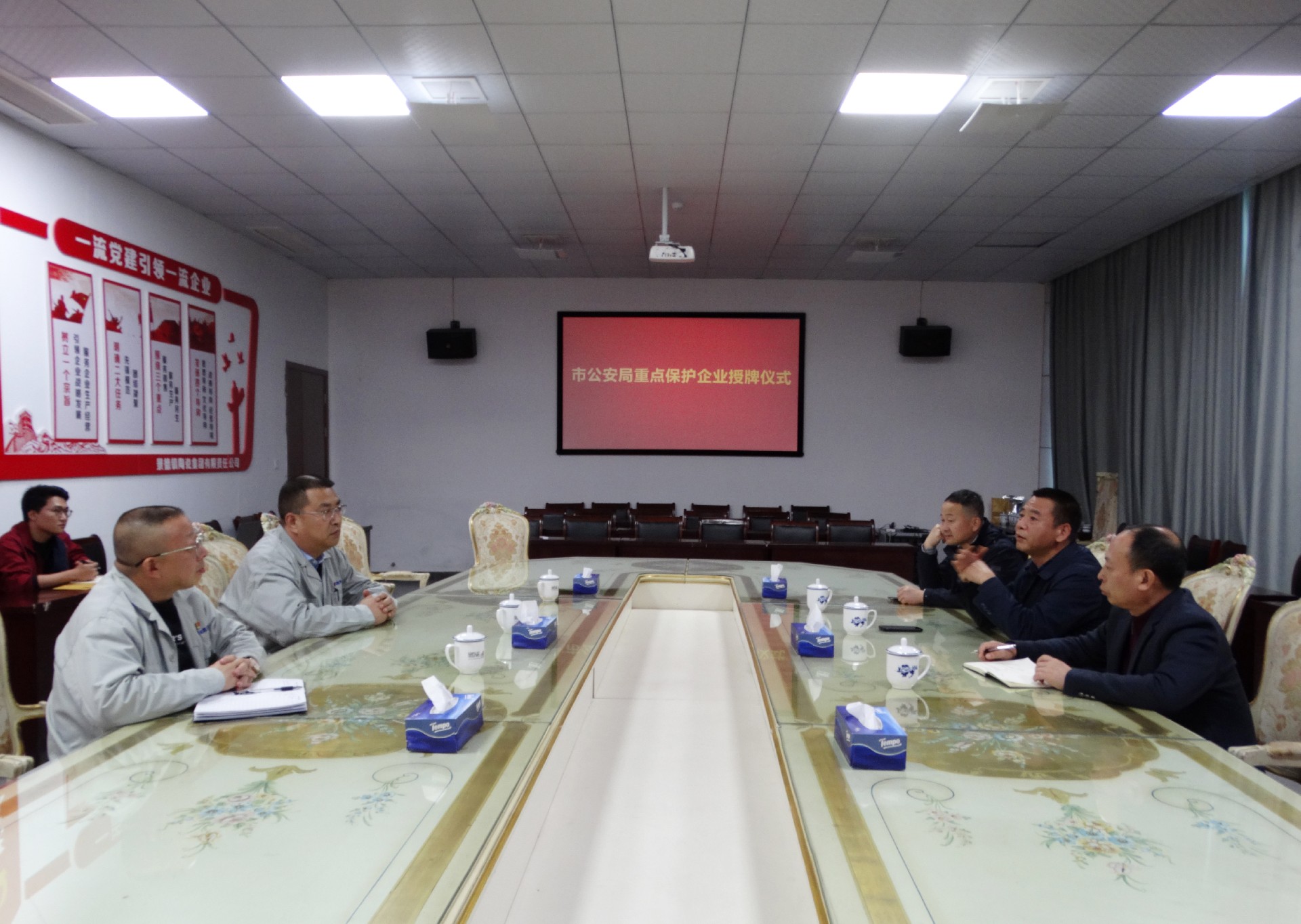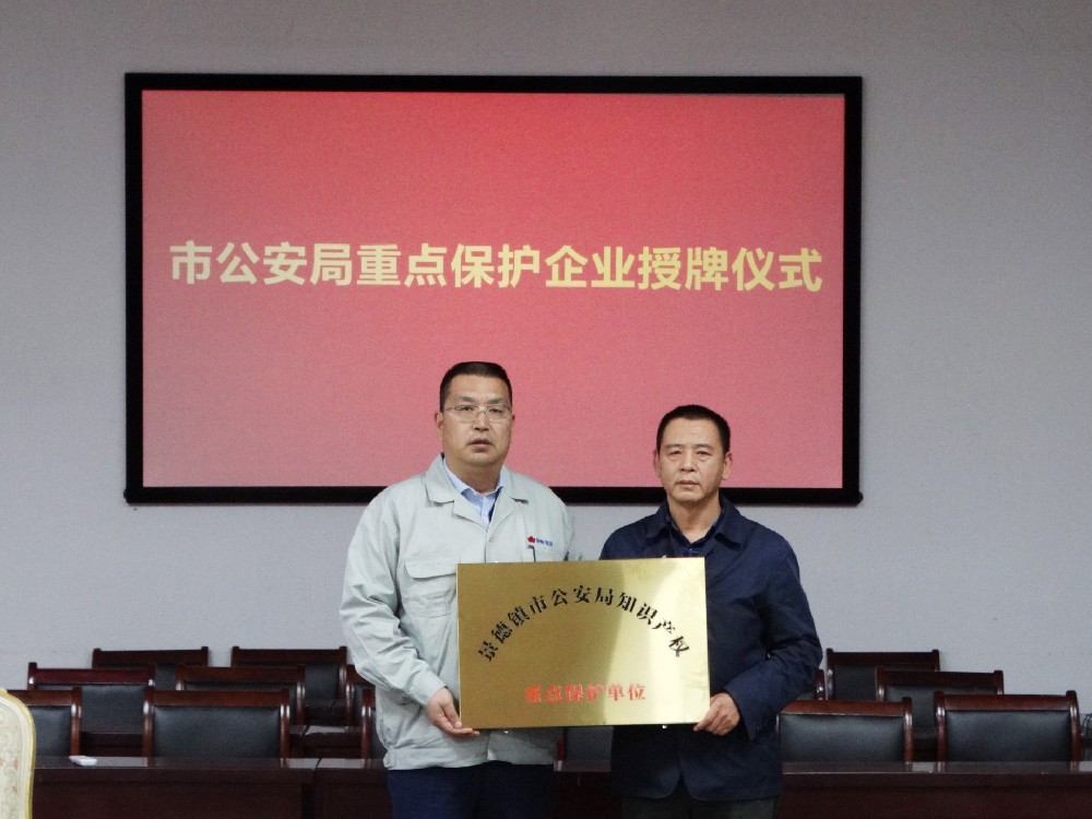 121日下午,市公安局在景陶集團(tuán)一樓會(huì)議室舉行重點(diǎn)保護(hù)企業(yè)授牌儀式。景德鎮(zhèn)市公安局食藥環(huán)偵查分局局長(zhǎng)周興妙,副局長(zhǎng)趙敬展,知識(shí)產(chǎn)權(quán)大隊(duì)長(zhǎng)徐廣志出席授牌儀式。景陶集團(tuán)黨委副書記、總經(jīng)理邢浩,副總經(jīng)理袁建國(guó)參加授牌儀式。