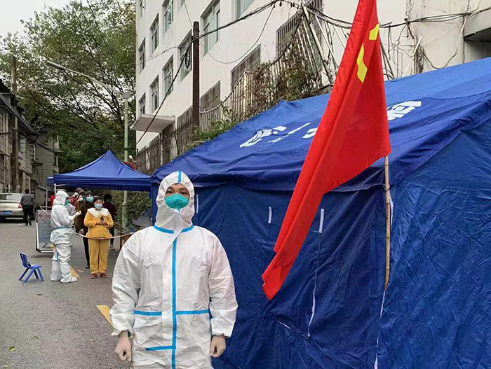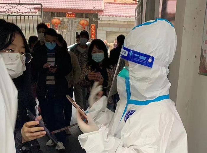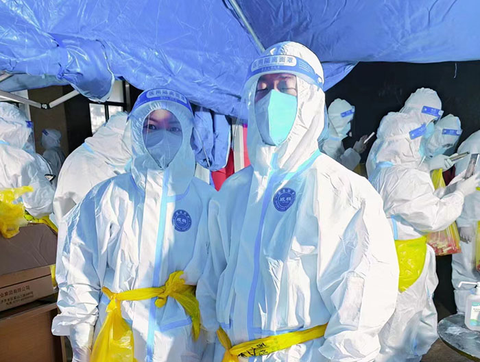 社區(qū)“雙報到”,抗疫顯擔(dān)當(dāng)。疫情來襲,黨員穿上“大白”防護服、做好秩序維護、發(fā)放健康檢測表、信息錄入、政策宣傳、掃碼查驗、上門進行采集核酸……。在各管控小區(qū),黨員志愿者們的身影,一直在為小區(qū)居民們辛苦地付出著。“我們都是小區(qū)業(yè)主,又都黨員志愿者,在這種特殊時刻更要挺身而出,體現(xiàn)作為黨員的本分,在危難時刻顯擔(dān)當(dāng)。根據(jù)防疫工作安排,每天的工作時長都不固定,但我們每天都從半夜工作到凌晨。我們社區(qū)大家的配合度都很高,整個小區(qū)情況比較平穩(wěn),我們覺得能夠在疫情防控工作貢獻一些力量感到很開心?!蔽S狼逭f道。