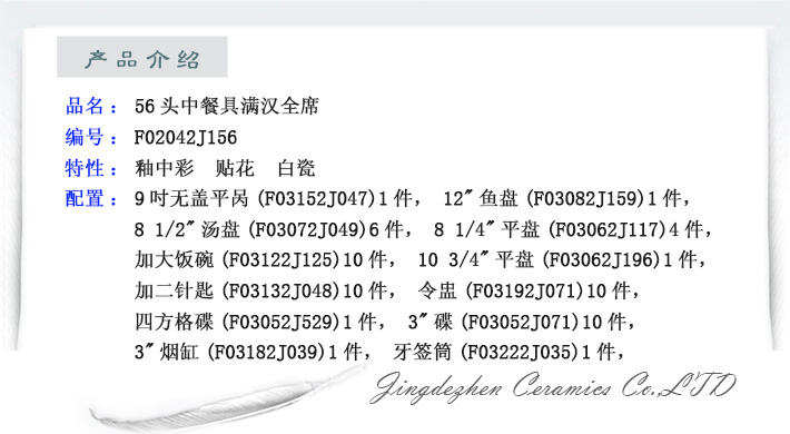 56頭中餐具滿漢全席